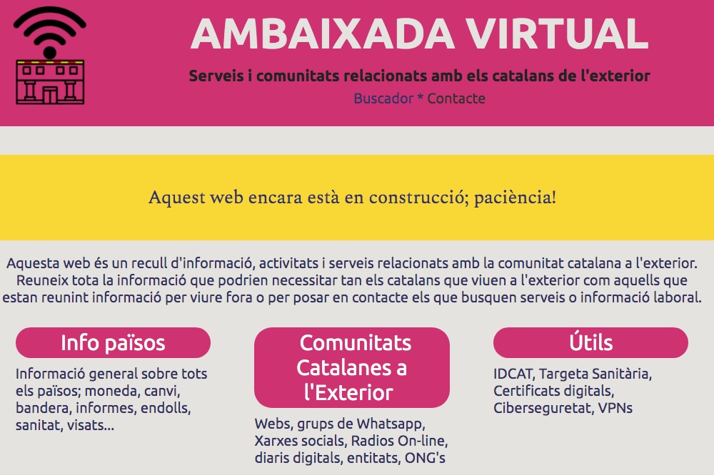 Recull d'informació, activitats i serveis relacionats amb la comunitat catalana a l'exterior. Reuneix tota la informació que podrien necessitar tan els catalans que viuen a l'exterior com aquells que estan reunint informació per viure fora o per posar en contacte els que busquen serveis o informació laboral. |