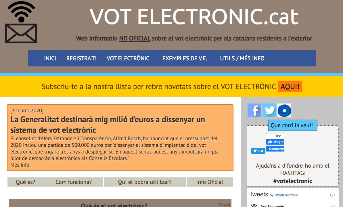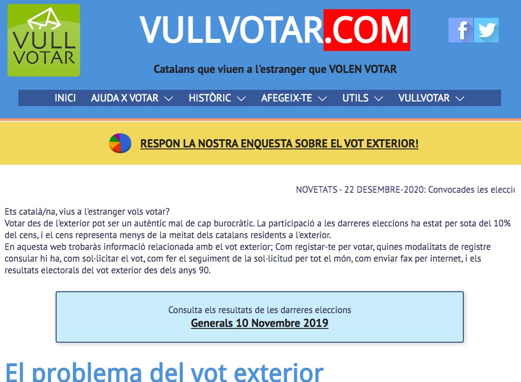 Tota la informació relacionada amb el vot exterior; Com registar-te per votar, quines modalitats de registre consular hi ha, com sol·licitar el vot, com fer el seguiment de la sol·licitud per tot el món, com enviar fax per internet, i els resultats electorals del vot exterior des dels anys 90. |